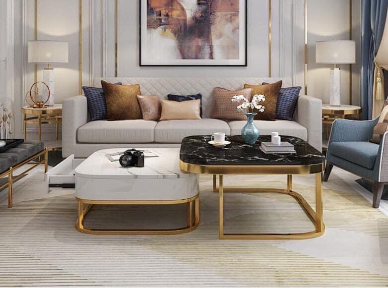 - Màu sắc đơn giản khiến bàn trà sofa đẹp phù hợp bày trí trong nhiều không gian
