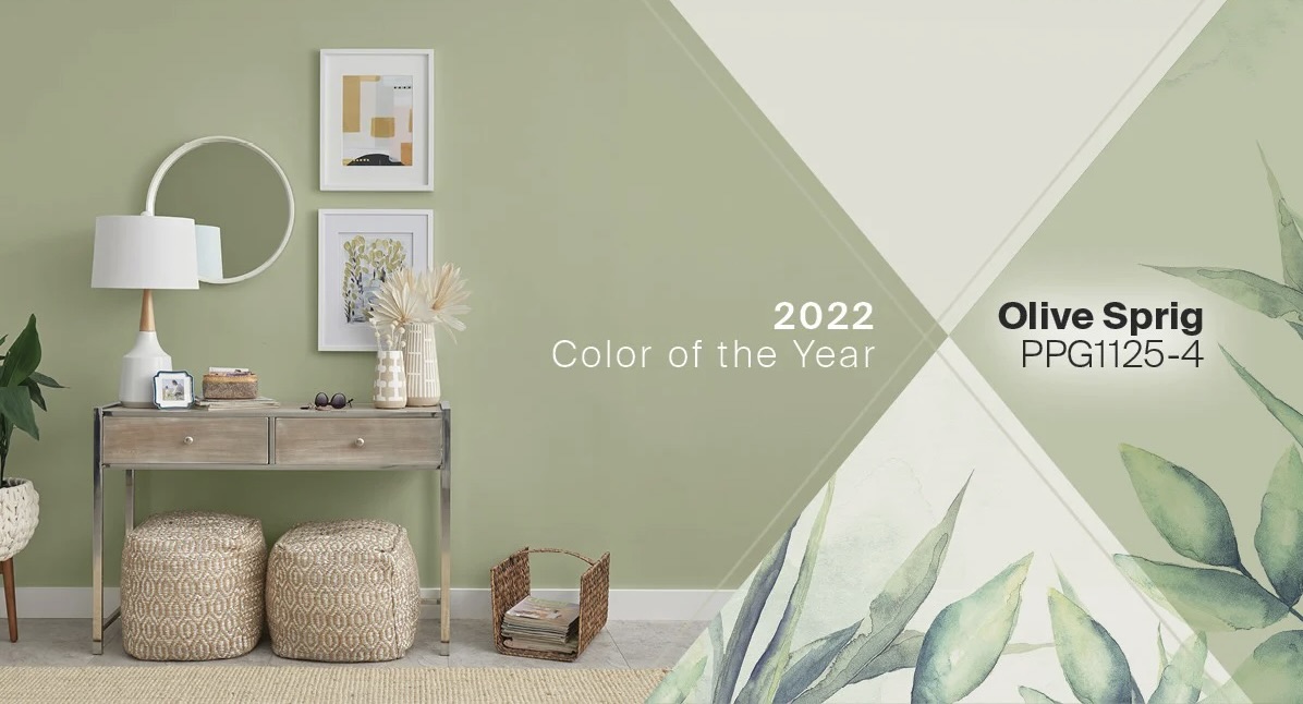 Olive Sprig – màu chủ đạo 2022 của hãng PPG có khả năng làm dịu không gian rất tốt và tạo nên sự cuốn hút, thoải mái cho dù ở bất kì nơi nào của ngôi nhà bạn